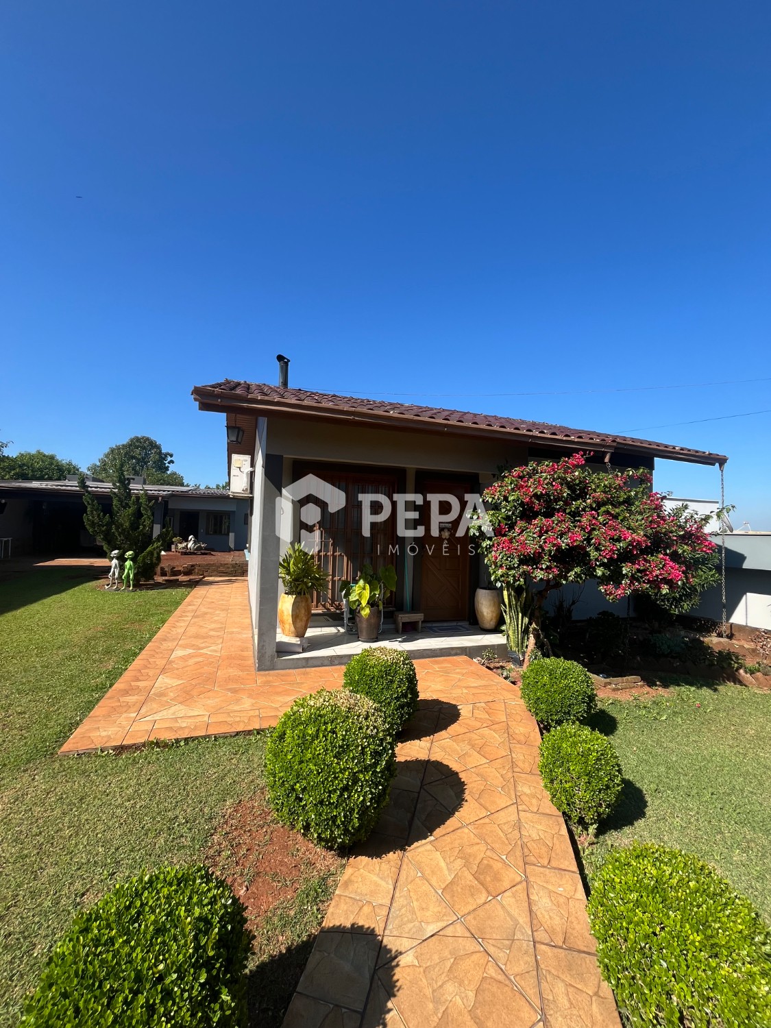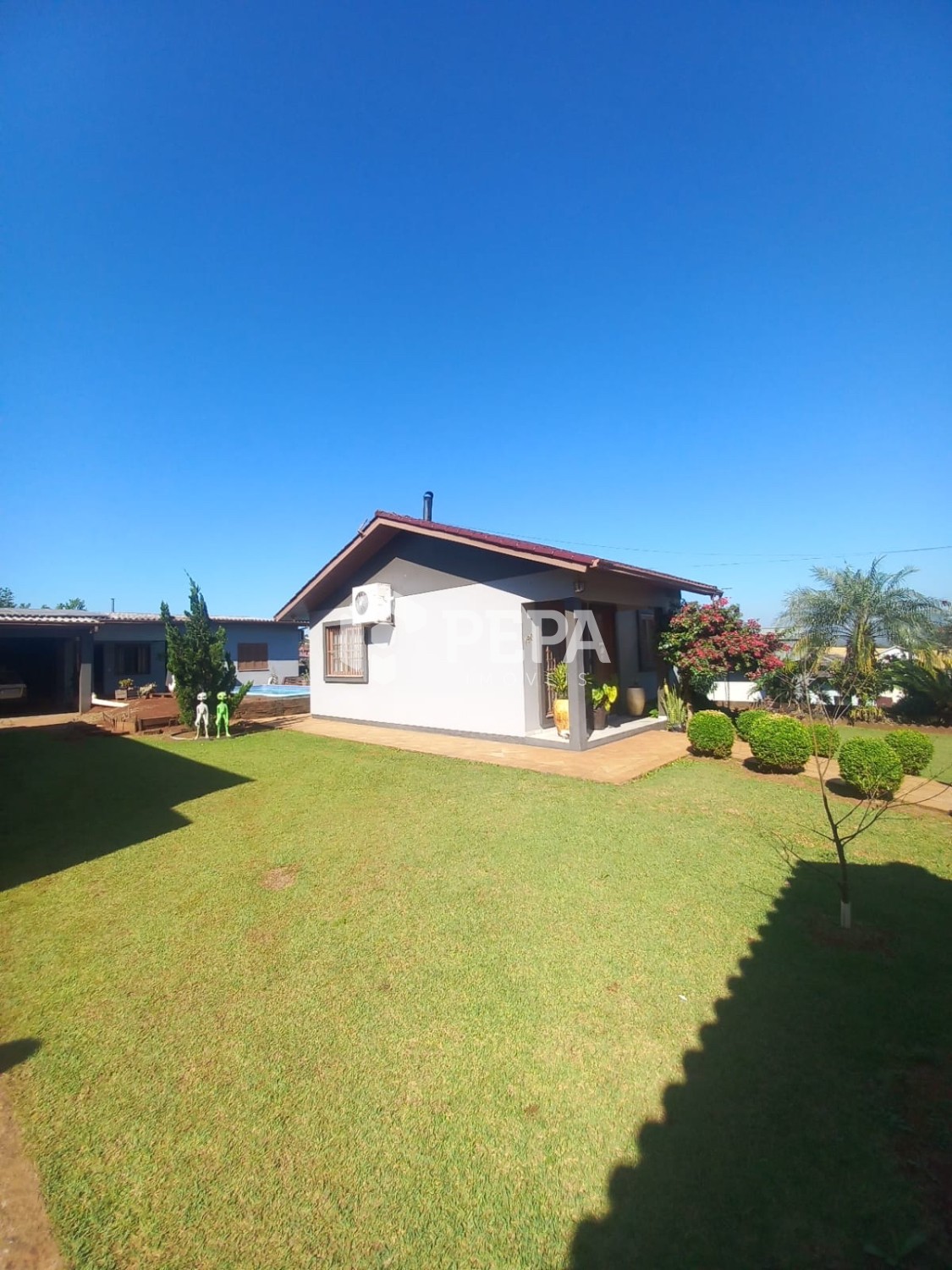 São duas casas em um amplo terreno de 525,00 m2. A casa da frente possui 52,48 m2 e a dos fundos 108,48, ambas de 02 dormitórios e entre elas a piscina para desfrutar nos momentos de lazer. Terreno murado e cercado com portão eletrônico. Agende sua visita!